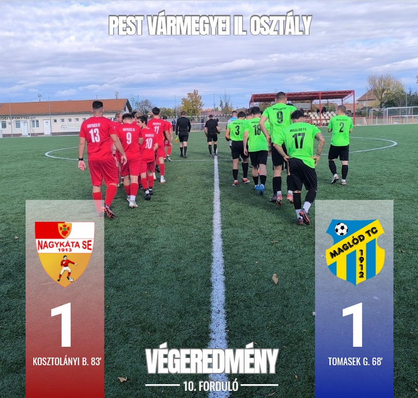 A hajrában mindkét csapat próbálkozott a győztes találat megszerzésével, de újabb gól már nem született. A küzdelmes, helyenként feszült mérkőzés végül igazságos döntetlennel zárult, így csapatunk egy ponttal térhetett haza Nagykátáról.