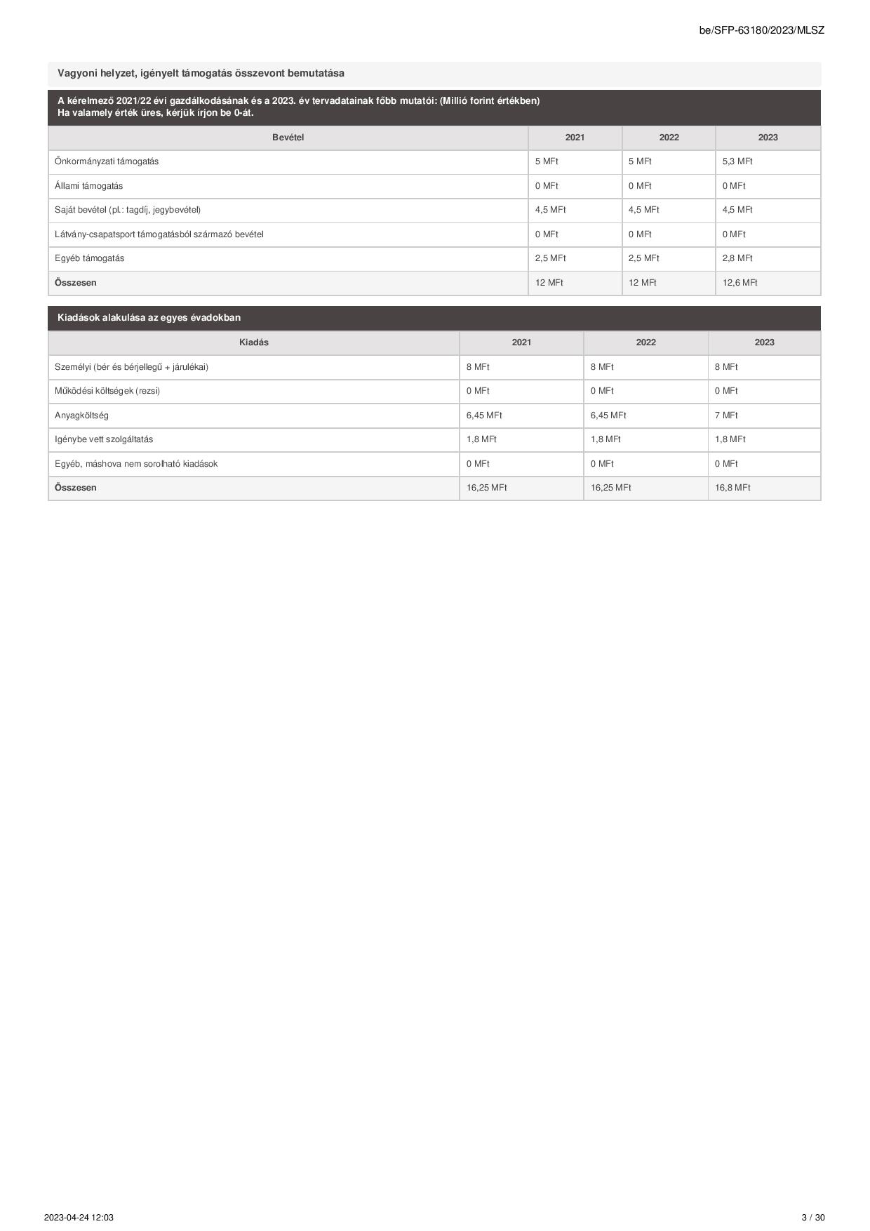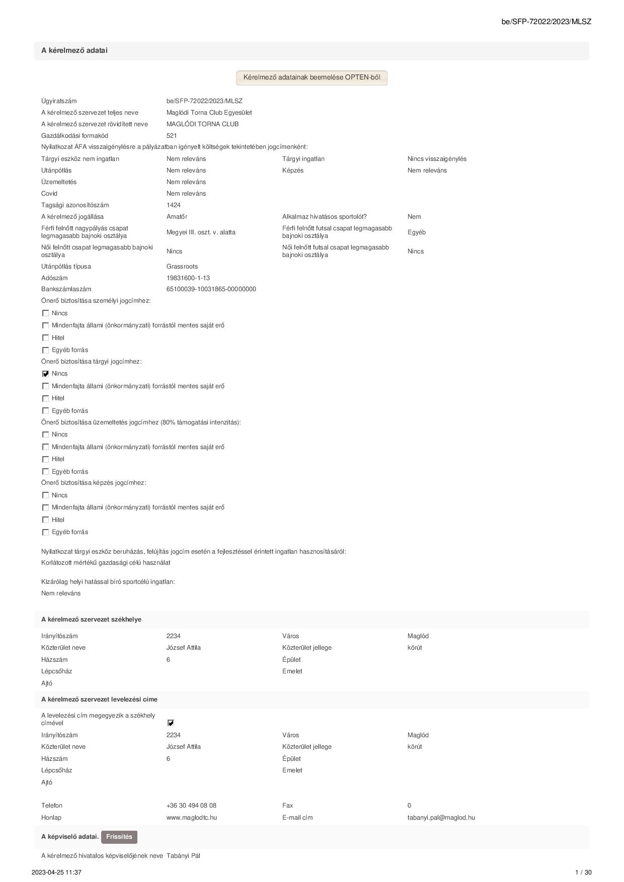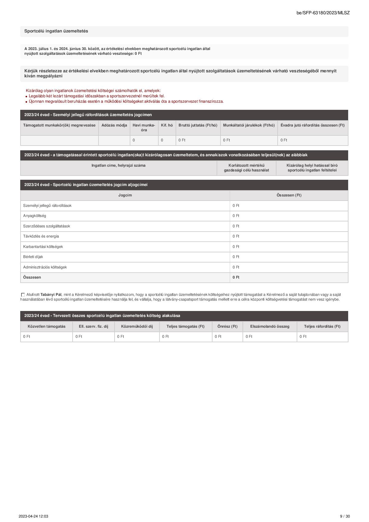 MLSZ Pályaépítés TAO DOKUMENTUMOK 2023/2024:
