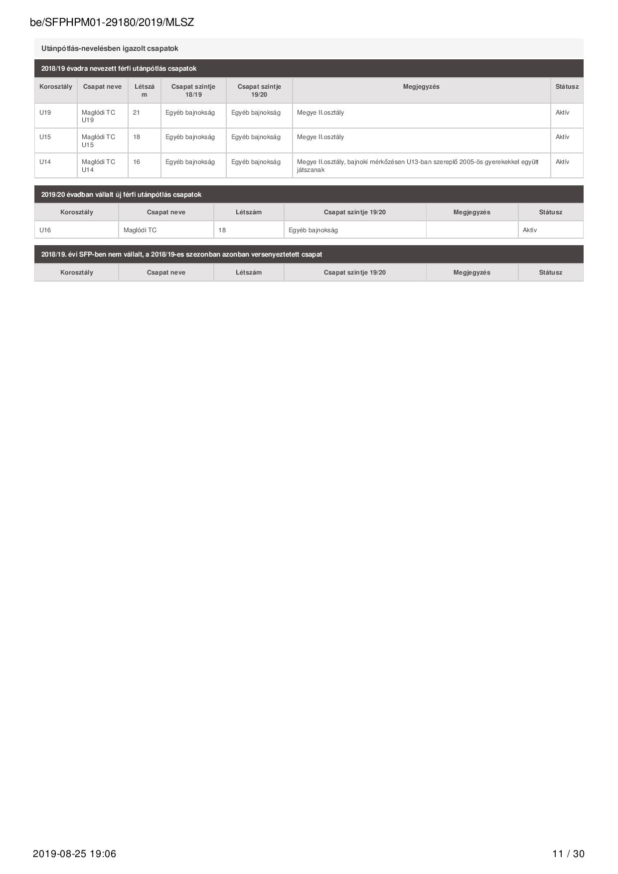MLSZ TAO DOKUMENTUMOK 2019/2020:
