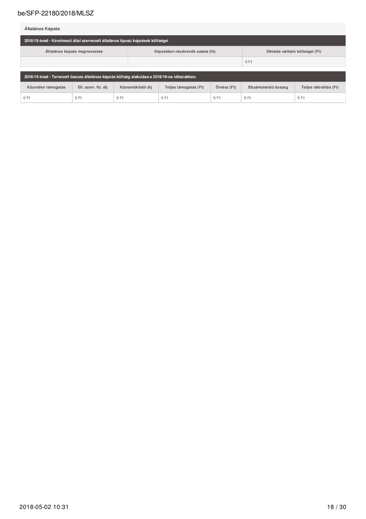 FEJLESZTÉSI PROGRAM 2018/2019: