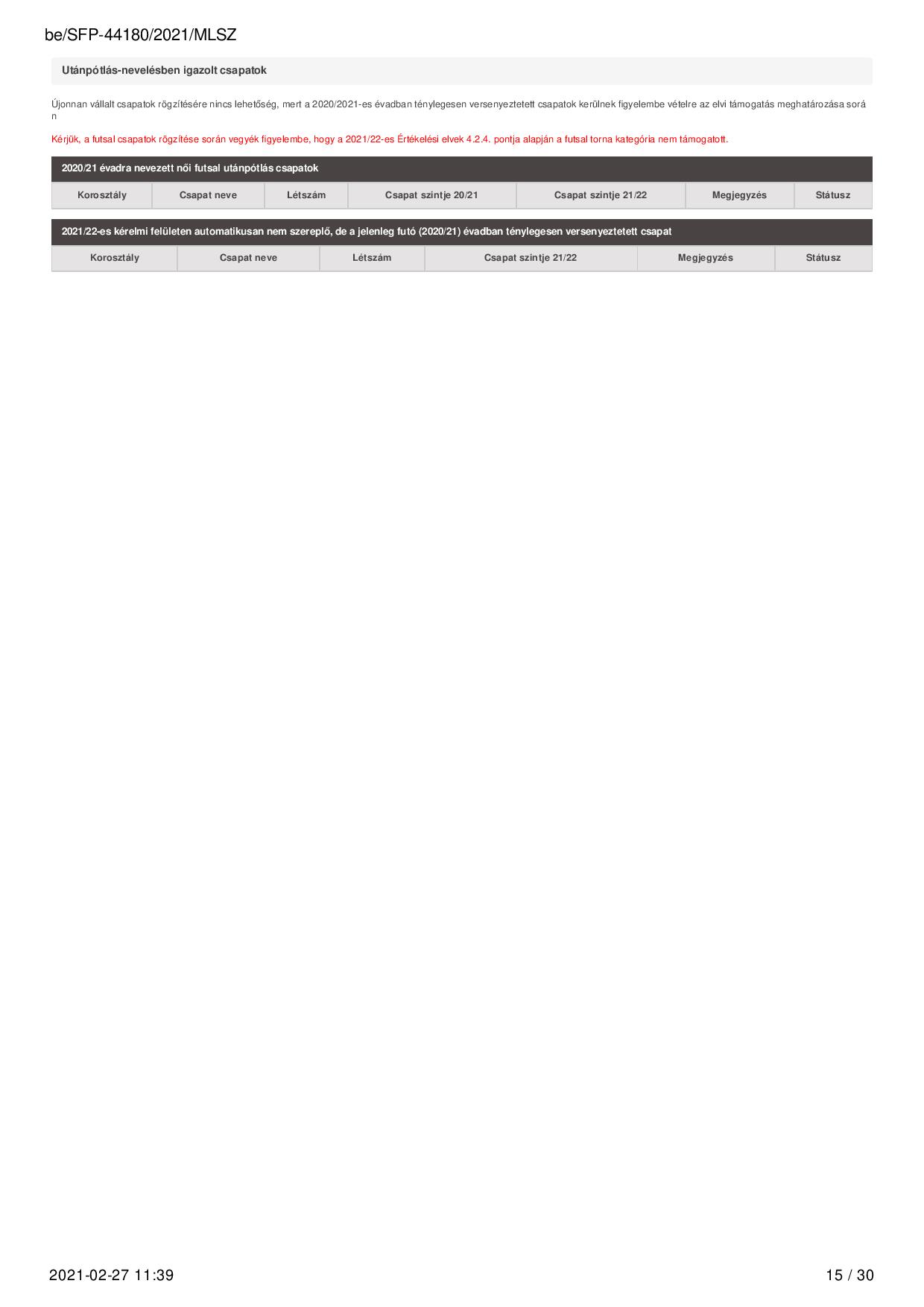 MLSZ FEJLESZTÉSI PROGRAM 2021/2022: