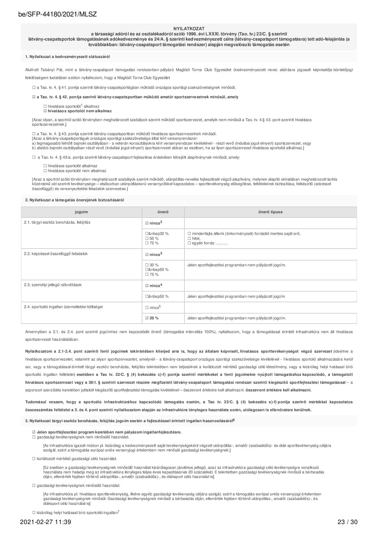 MLSZ TAO DOKUMENTUMOK 2021/2022: