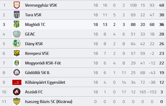GYÁLI BKSE - MAGLÓDI TC 3 - 0 (3 - 0)
